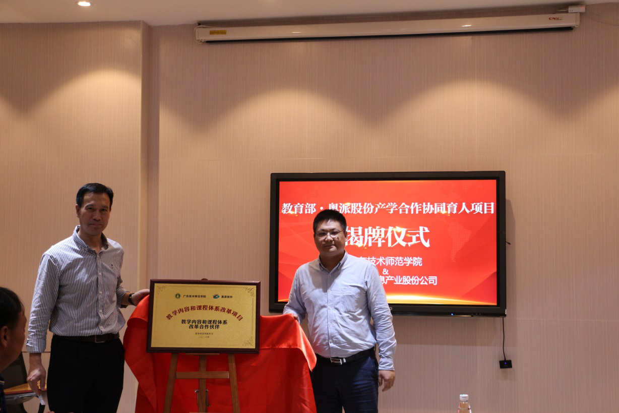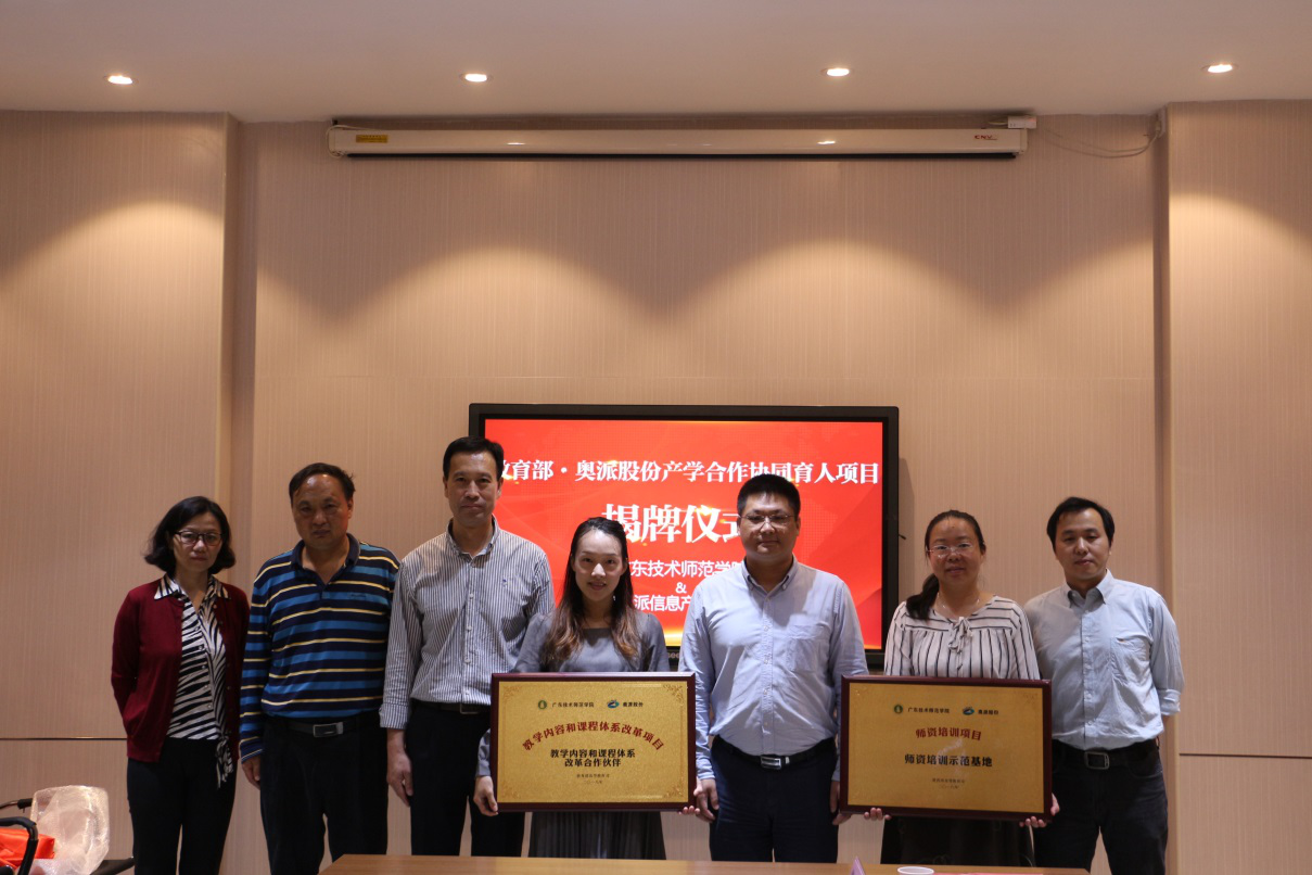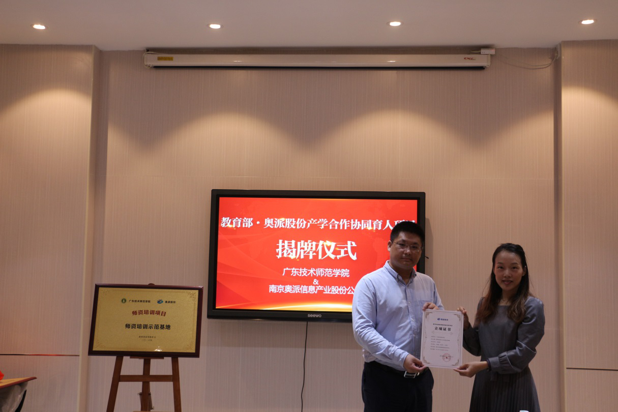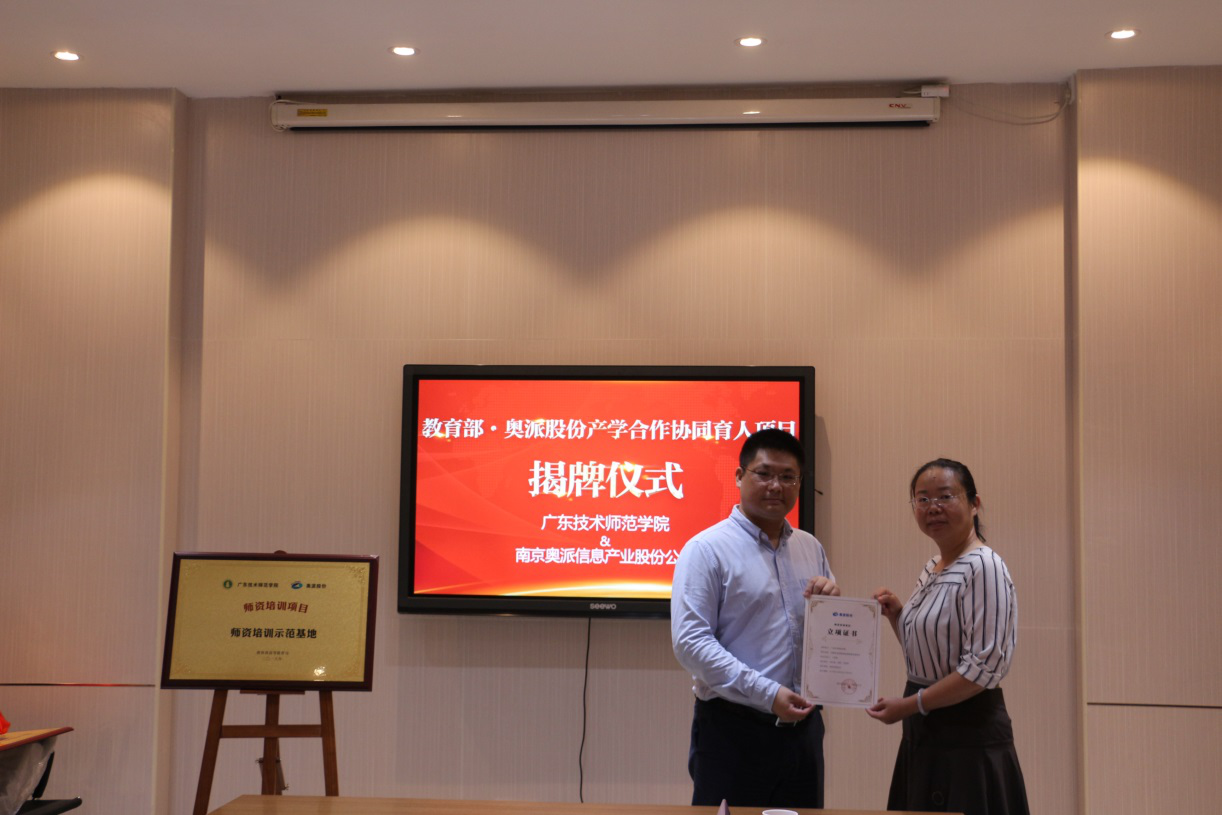 双方就如何开展合作进行一番深入探讨后,正式进行了教育部产学合作协同育人项目的授牌仪式和立项证书颁发仪式。至此,南京奥派信息产业股份公司和广东技术师范学院的校企合作步入了新的阶段。双方将以更加开放和专注的态度,推进校企合作,深化产学合作,共建、共管新型人才培养模式,共育产业发展需要的人才,推动产业转型升级,构建产教融合良好生态!