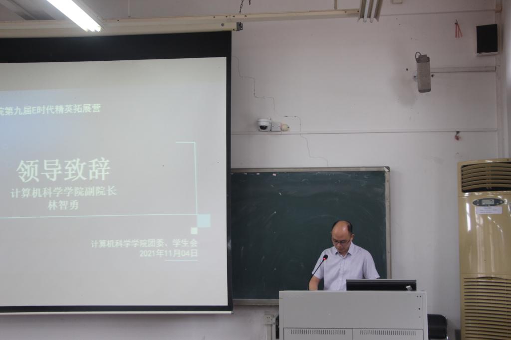 E时代精英拓展营开幕式上,林智勇副院长发表致辞,对长期以来支持和关心拓展营的领导、兄弟院系及各企业表示了感谢。他指出,E时代精英拓展营是我院特色品牌活动,营造了浓厚的校园科技创新文化氛围。他希望,同学们能够继续借助该平台,进一步提升科技创新意识,掀起大学生科技文化学习新高潮,求是创新,开拓进取,在实践中学真知、悟真谛,做有理想、有本领、有担当的有为青年。