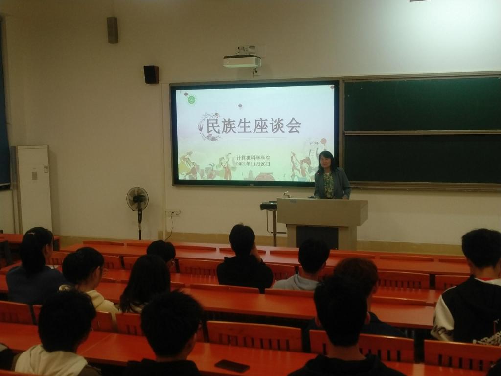 为进一步了解学院民族生入学以来的学习与生活情况,帮助民族生更好的成长。计科院河源学工办于2021年11月28日晚上7点在唯实楼109召开了民族生座谈会,本次座谈会邀请了新疆派驻河源校区的专职教师博潘老师参加。