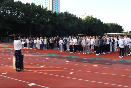 升旗仪式结束后,教师代表陈东莹老师以题《争做“三好”新人,共赴“冲百”征程》为题,鼓舞学生写下最灿烂的青春篇章。她强调“做人好,身体好,就业好”不仅是我们个人成长指引,更是我们为学校和学院贡献力量的重要路径。她鼓励计科学子将个人发展融入学校大局,以良好的精神风貌和扎实的专业技能,成为“冲百”征程中充满活力的生力军。