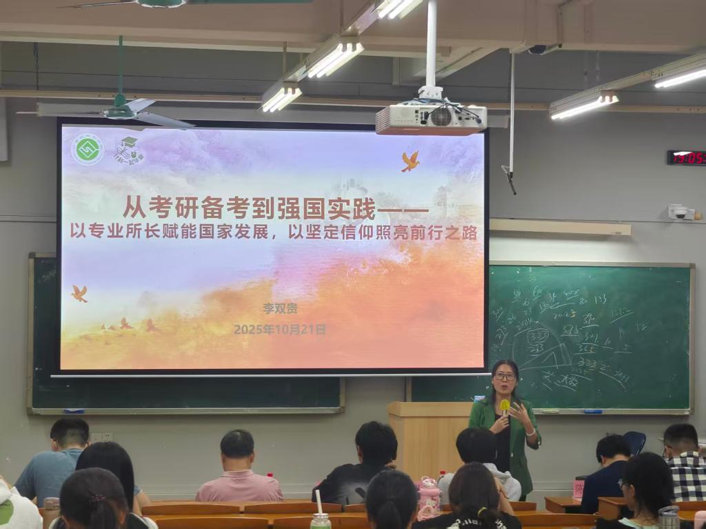 会上,李双贵以“从考研备考到强国实践——以专业所长赋能国家发展,以坚定信仰照亮前行之路”为题致辞,她对同学们的拼搏精神给予肯定并介绍了学院全方位备考支持体系,她鼓励同学们强信心、重选择,结合计算机行业发展趋势,将个人理想融入国家科技发展需求。