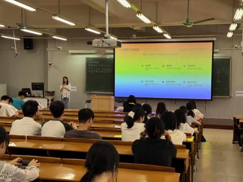 为强化心理健康教育基层队伍建设,提升心理委员与宿舍长对心理障碍和危机的识别及应对能力,10月20日,学生处心理健康教育与咨询中心舒畅老师于东校区第二教学楼 302教室,面向东校区计算机科学学院心理骨干开展以“夯实专业技能,筑牢心理防线”为主题的专业培训。