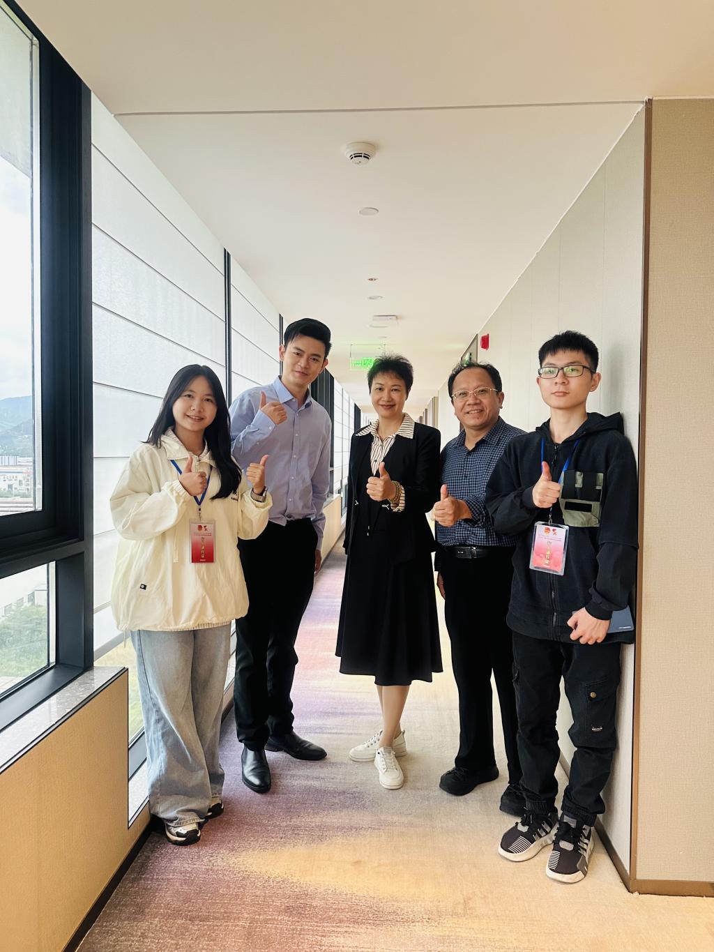 照片左起:沈李湘、何畅、吴绮瑜书记、胡晓青副校长、区政豪