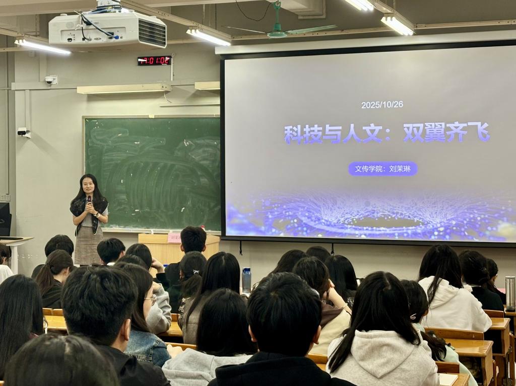 11月4日,计算机科学学院邀请文学与传媒学院副院长刘茉琳教授,为学院入党积极分子和发展对象讲授题为《科技与人文:双翼齐飞》的专题党课。此次党课由计算机科学学院党委副书记杨燕佳主持。