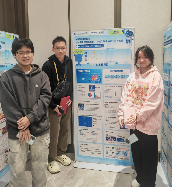 本届大赛由教育部高等学校图书情报工作指导委员会指导,全国36万名大学生同台竞技,赛事通过“校赛选拔赛、省赛淘汰赛及决赛、全国联赛”层层筛选,在激烈的竞争中我院学子作为广东省仅有的两支参赛队伍(广东技术师范大学、华南农业大学)之一突出重围,成功晋级全国联赛,充分展现了我院在培养学生信息素养与AI技术融合方面的积极成效。