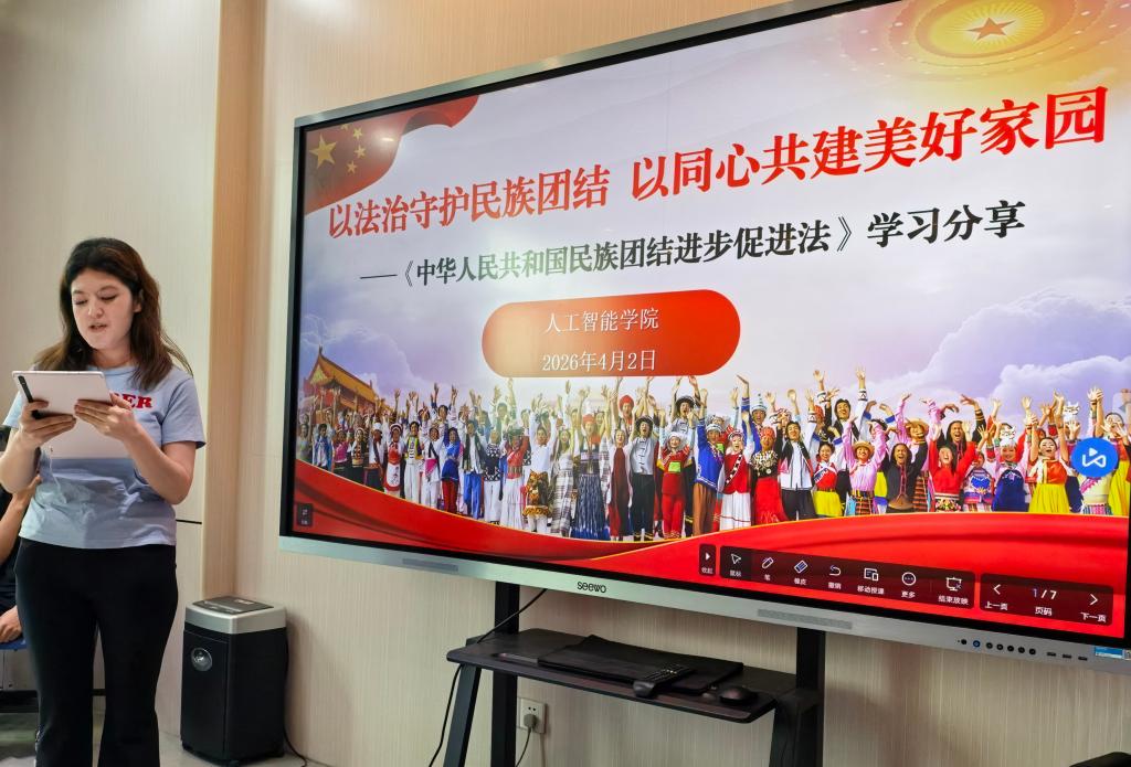 为不断铸牢中华民族共同体意识,4月2日,人工智能学院组织开展了《中华人民共和国民族团结进步促进法》专题学习分享会,各族师生围绕“以法治守护民族团结 以同心共建美好家园”主题,深入开展学习交流。学院党委书记李双贵、党委副书记杨燕佳与会并进行了学习指导。