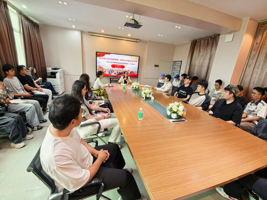 学习现场,相关老师对该法的立法背景、核心要义、重点条款进行了系统解读。学院党委书记李双贵强调,民族团结是各族人民的生命线,是国家发展进步的基石。她希望全体师生认真研读相关法律法规,深刻领悟“四个与共”共同体理念,自觉将民族团结融入学习、工作与生活,主动担当起维护民族团结的责任使命,努力成长为可堪大用、能担重任的时代新人。交流研讨环节,三位学生代表依次发言,结合自身成长经历与校园生活实际,分享学习感悟,畅谈对民族团结的理解,表示将牢记法律规定、践行法治精神,自觉做民族团结的维护者、传播者和践行者,以青春行动为中华民族共同体建设注入动能。