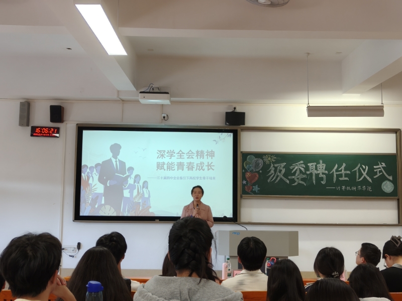 为深入贯彻落实学校“做人好、身体好、就业好”的育人目标,强化高校学生骨干的责任担当与综合素养,引导青年学子在新时代背景下明确成长方向,2025年12月24日下午,计算机科学学院党委副书记杨燕佳在唯实楼319教室为2025级全体学生干部带来了题为《深学全会精神,赋能青春成长》——党的二十届四中全会指引下高校学生骨干培育的专题讲座报告。